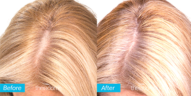 Results appear in approximately 4 weeks with a noticeable reduction in hair shedding. With continued use, users experience increased thickness and improved hair health followed by new growth, so hairlines, parts and thinning areas once again fill with hair.